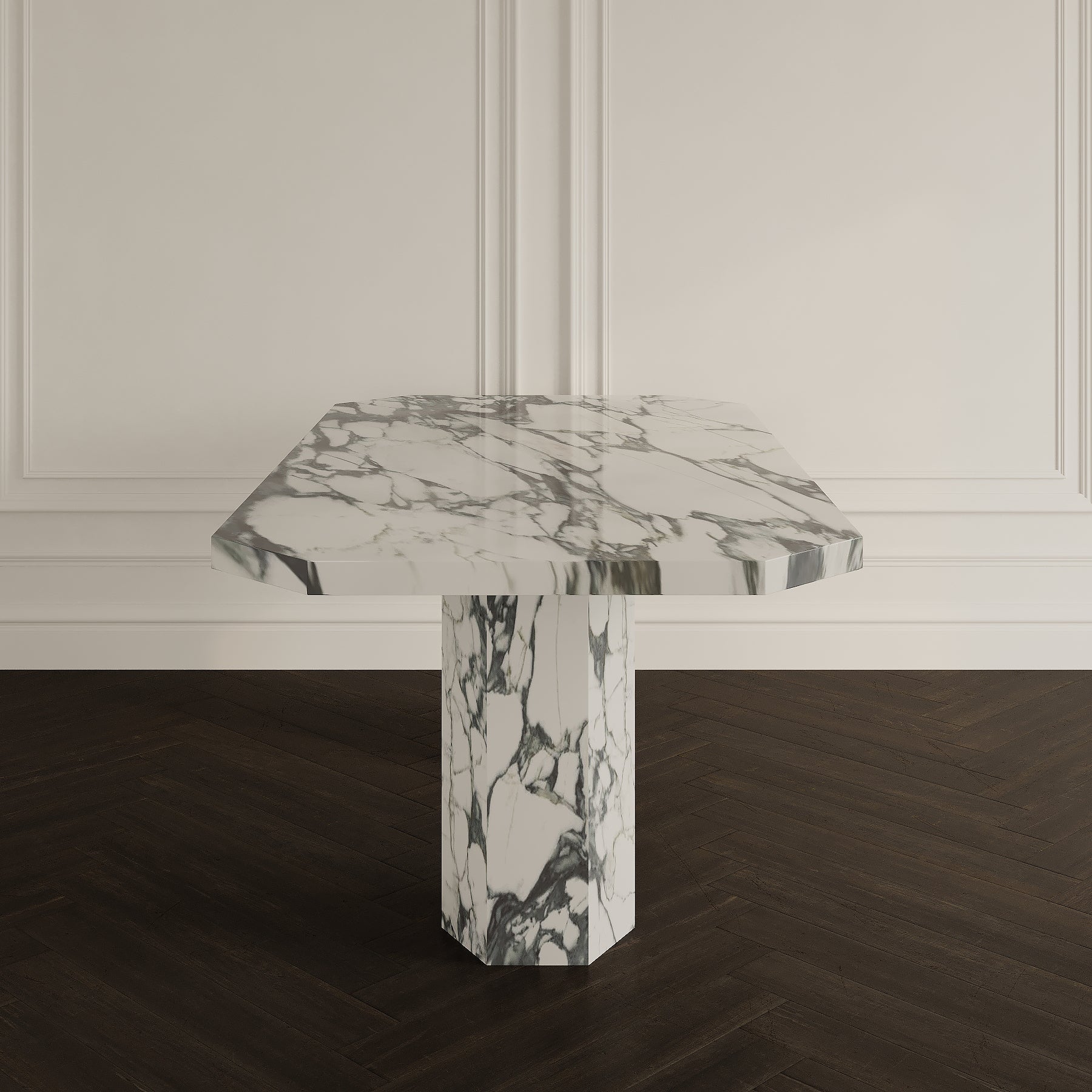 Distinctive and daring, the Axel dining table combines geometric precision with natural beauty. Its angular design highlights the unique tones and intricate veining of the stone, creating a bold yet timeless statement piece. Available in a honed or polished finish, with the option of a straight edge for contemporary appeal or a half bullnose edge for a refined touch. A modern classic that bridges architectural form and organic artistry, it’s a true focal point for contemporary interiors.